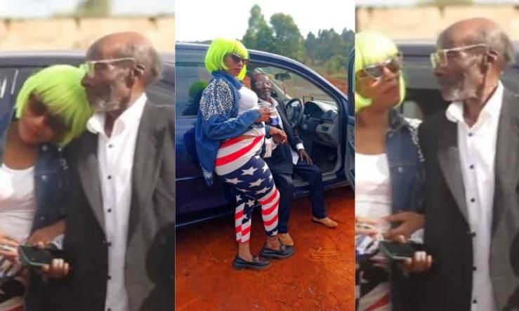 A collage image of socialite, Manzi wa Kibera and her new bae aged 65