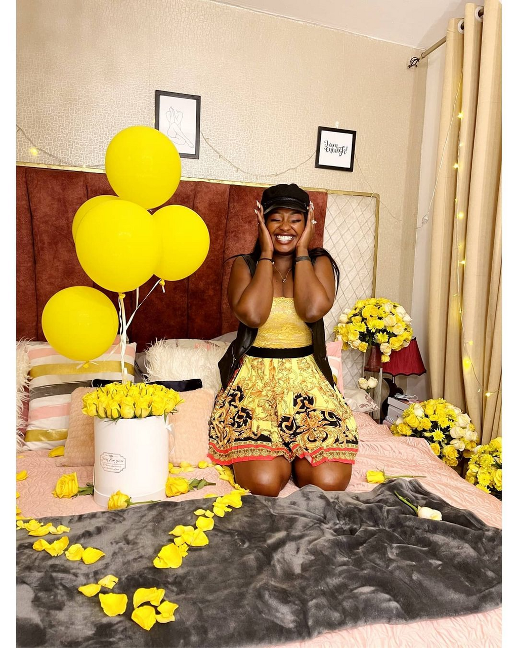 “Just when I thought that my Valentine's day 🌹🌹🌹 couldn't get any better, I come home to this!😭😭. A whole King 👑👑 rose up to the occasion and didn't hold back to give me the best Valentine's of my life 😭😭❤️❤️❤️. Yap, yellow 💛💛💛 roses are my favorite. I am a Happy Happy mama boys! Ps, my PA is the best, he made sure that my sharp senses stayed out of this entire arrangement," she wrote.