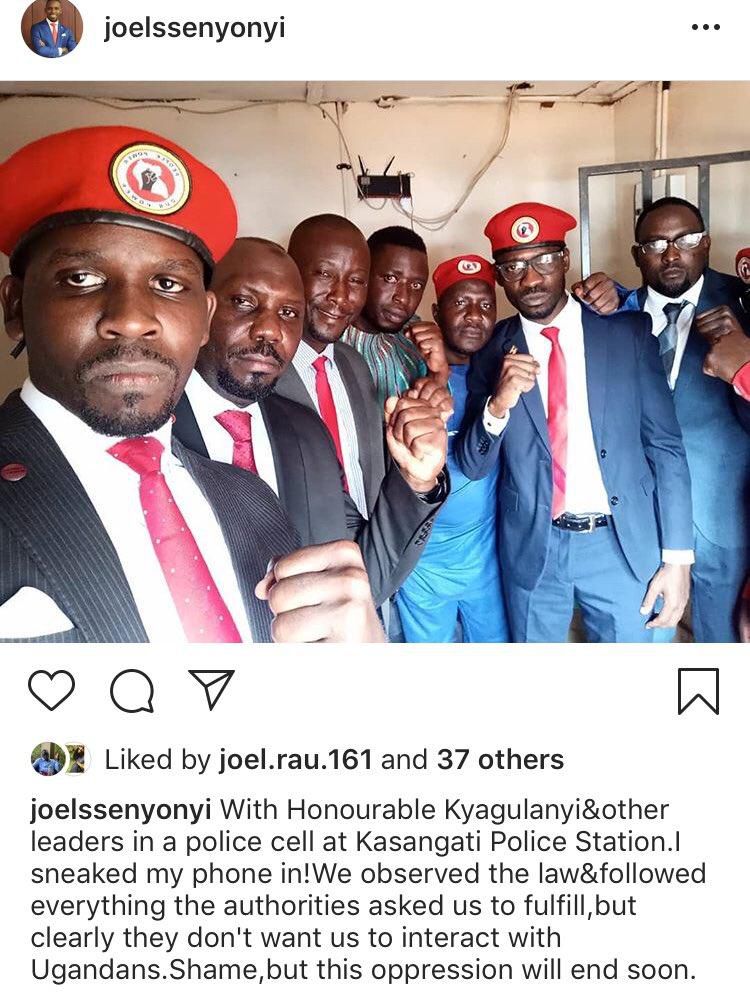 Reports indicate that Wine was arrested along side other members of the People Power Movement among them; Joel Ssenyonyi, Asuman Basalirwa, Latif Ssebagala, Benjamin Katana and Lewis Rubongoya and they are being detained at Kasangati police station.