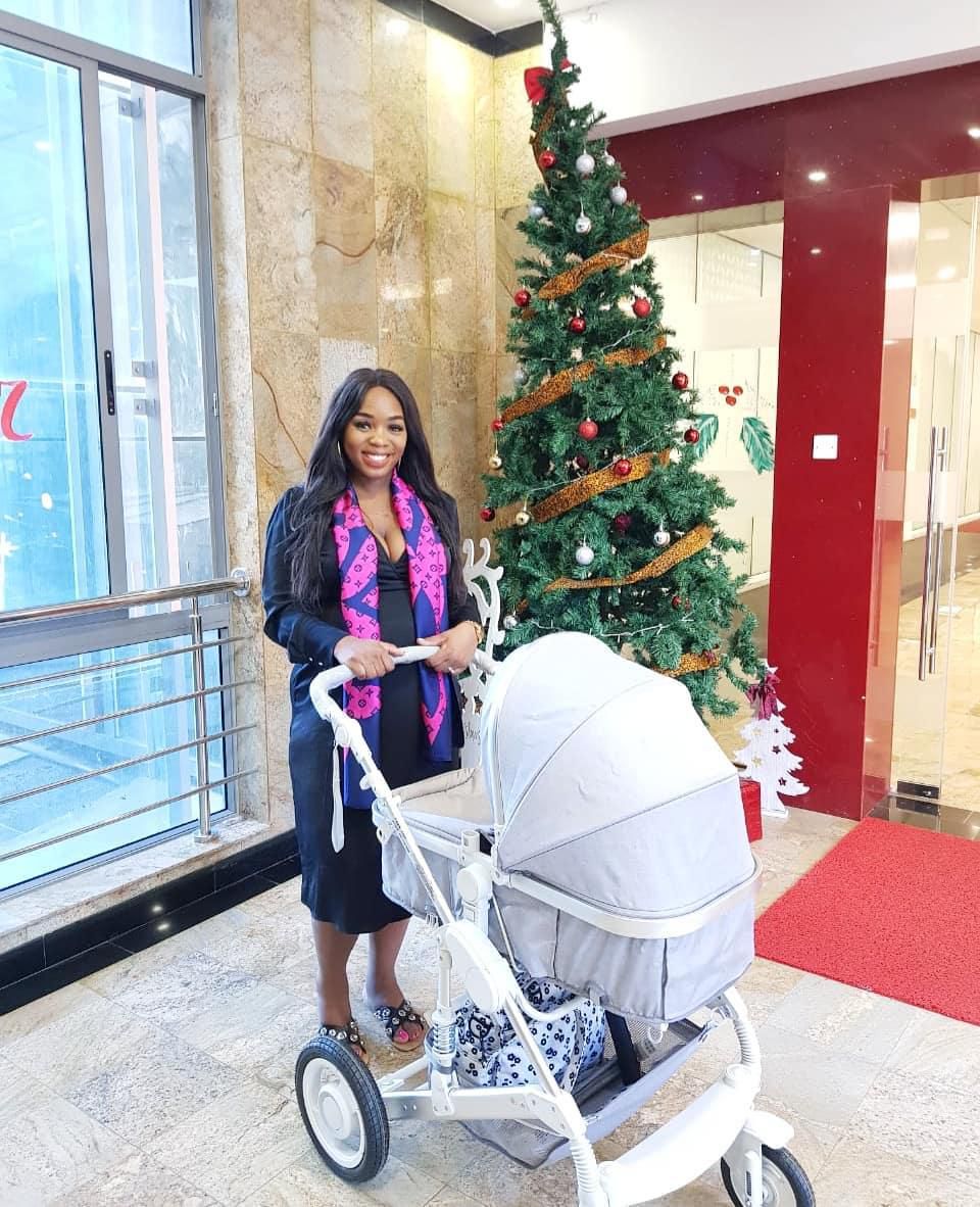 On 28th December she shared a photo while strolling with her son and captioned it “ First time out with my love...Hope y’all enjoying your holiday...Don't mind my swollen feet just recovering from child birth. #stripsofmotherhood.”