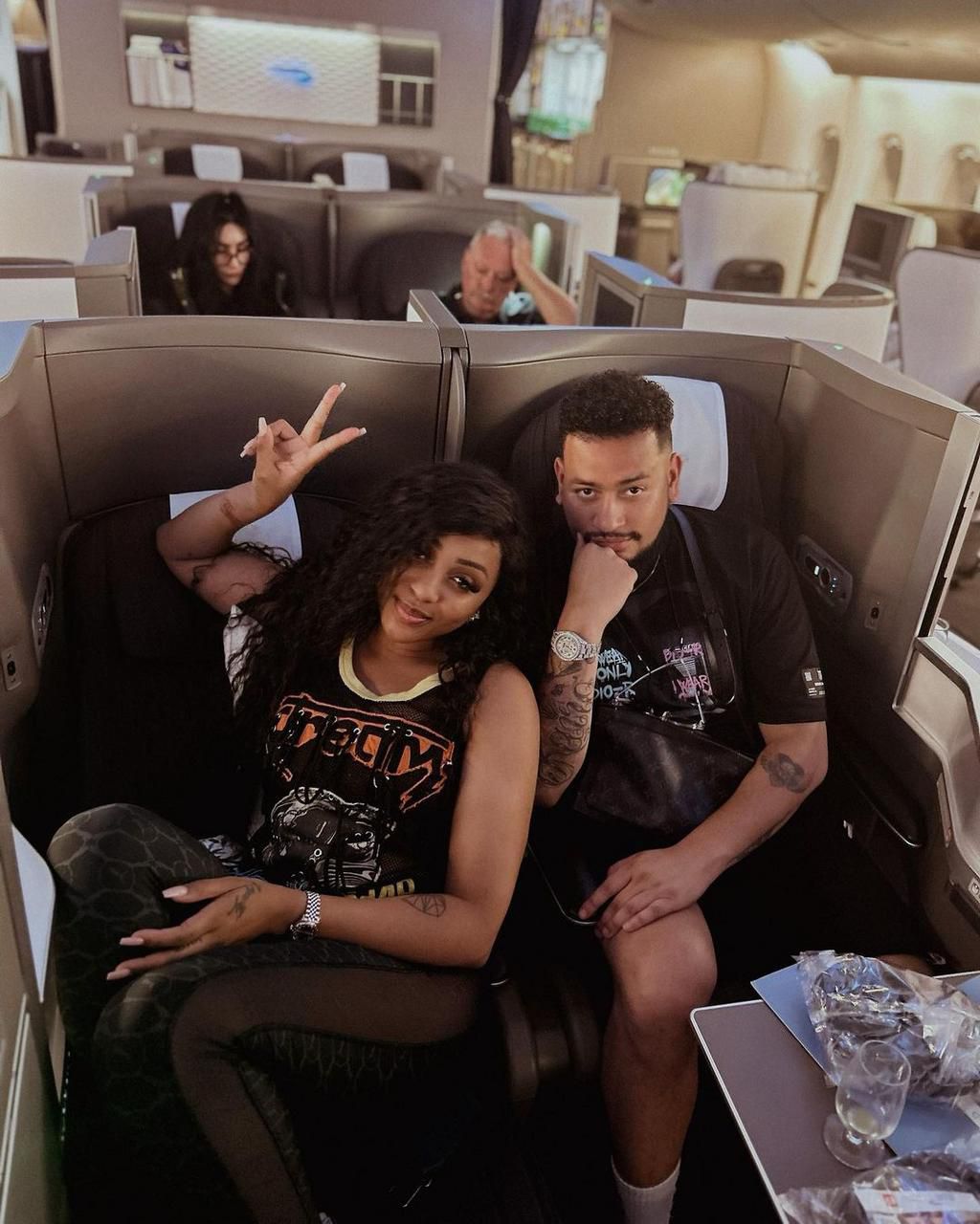 The late AKA and Ndia Nakai on a plane. [Instagram]