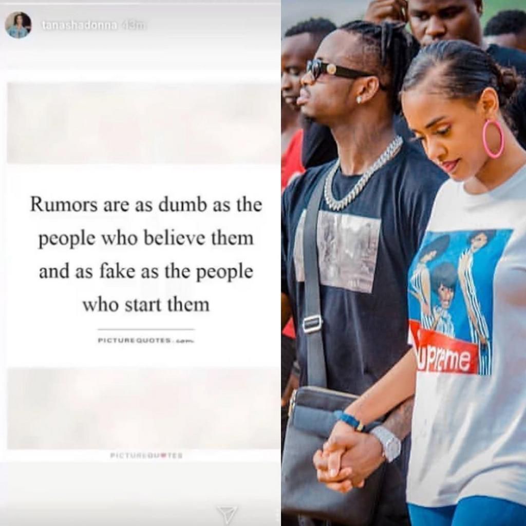Tanasha Donna’s response after reports that Diamond is already cheating on her (screenshots)
