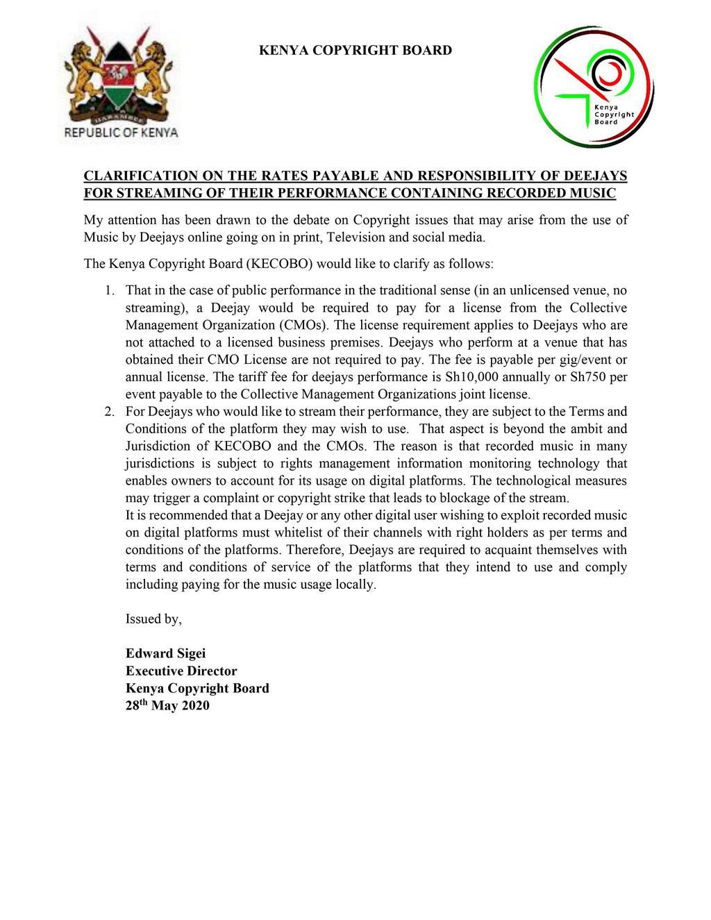 “Anyone who violates the exclusive rights of the copyright owner is an infringer of that copyright. When a DJ creates a live stream and starts broadcasting music to the Internet, he has become a radio station. He needs licences from copyright owners or CMO” shared KECOBO.