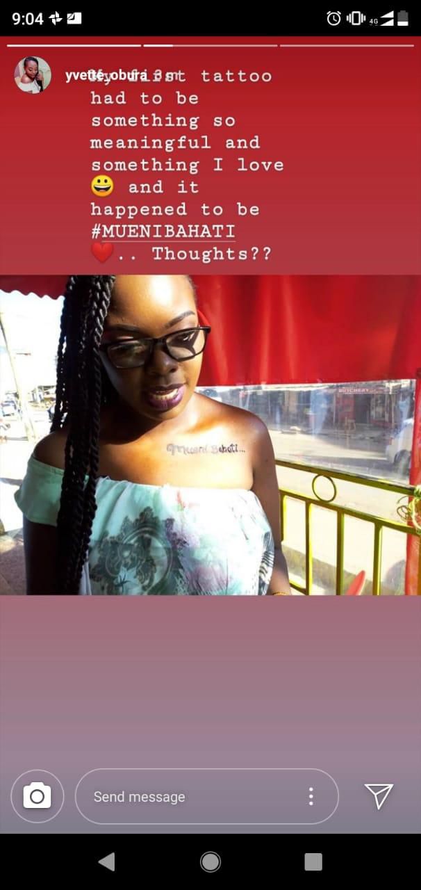 “My first tattoo had to be something meaningful and something I love and it happened to be #muenibahati…thoughts??” shared Mama Mueni.