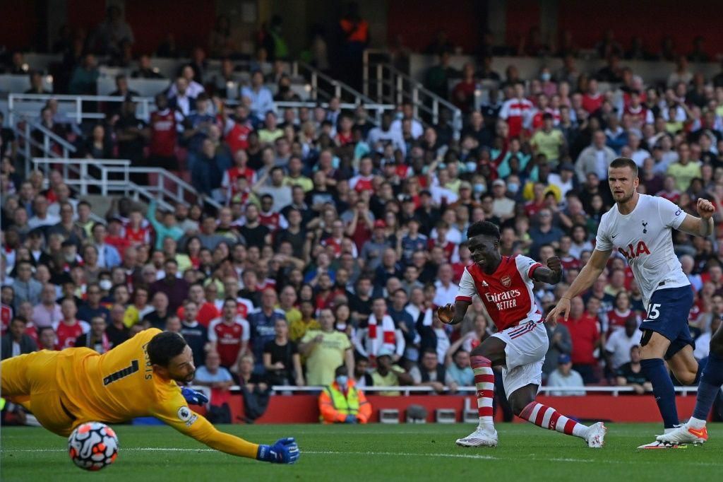 Bukayo Saka (centre)scored Arsenal's third goal against Tottenham