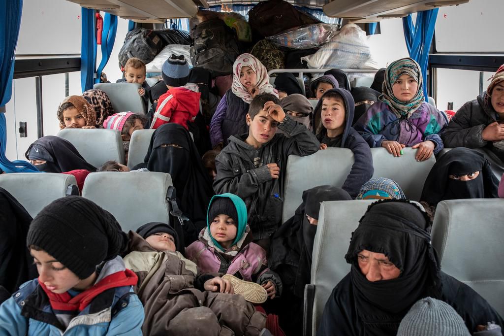 Women and children fleeing the last area controlled by ISIS jam into a bus to reach camps controlled by Kurdish Syrian militias.CreditIvor Prickett for The New York Times