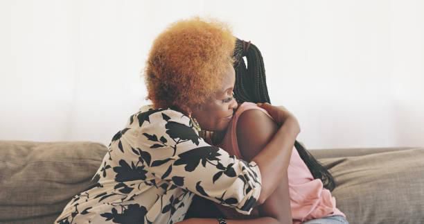 A woman in mourning being comforted