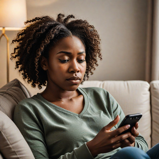 An AI-generated image of a woman looking at her phone (Hotpot.ai)