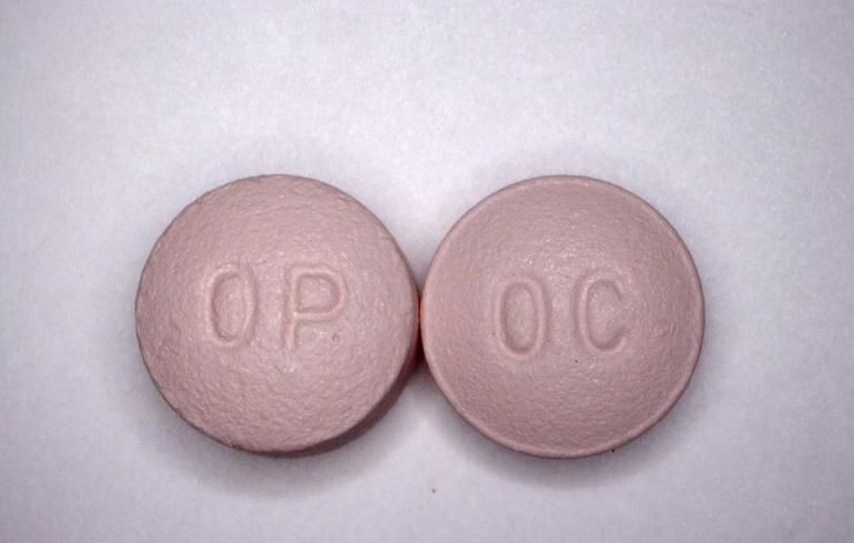 This undated handout file photo obtained courtesy of the US Drug Enforcement Administration shows 20 mg pills of the opioid painkiller OxyContin