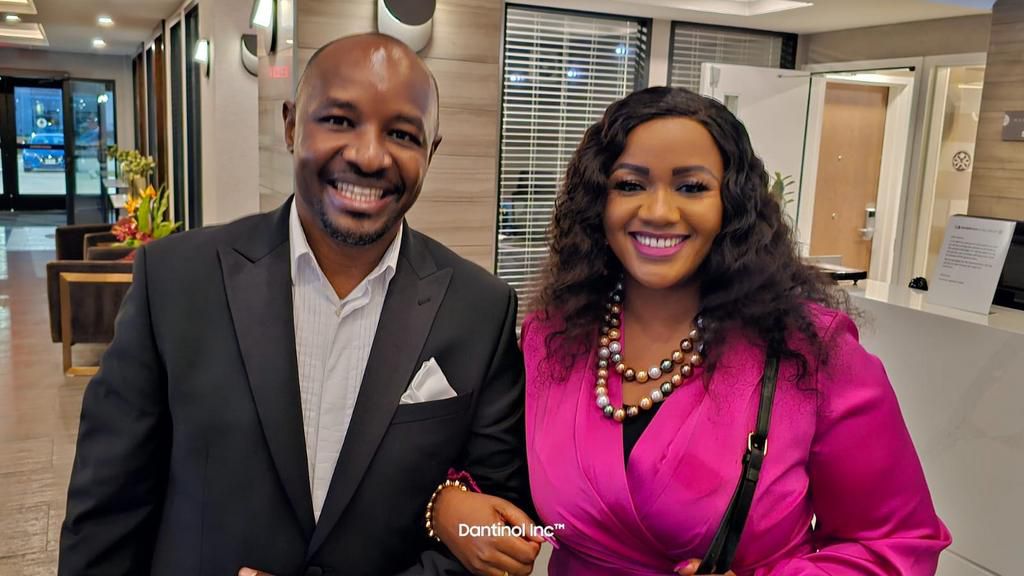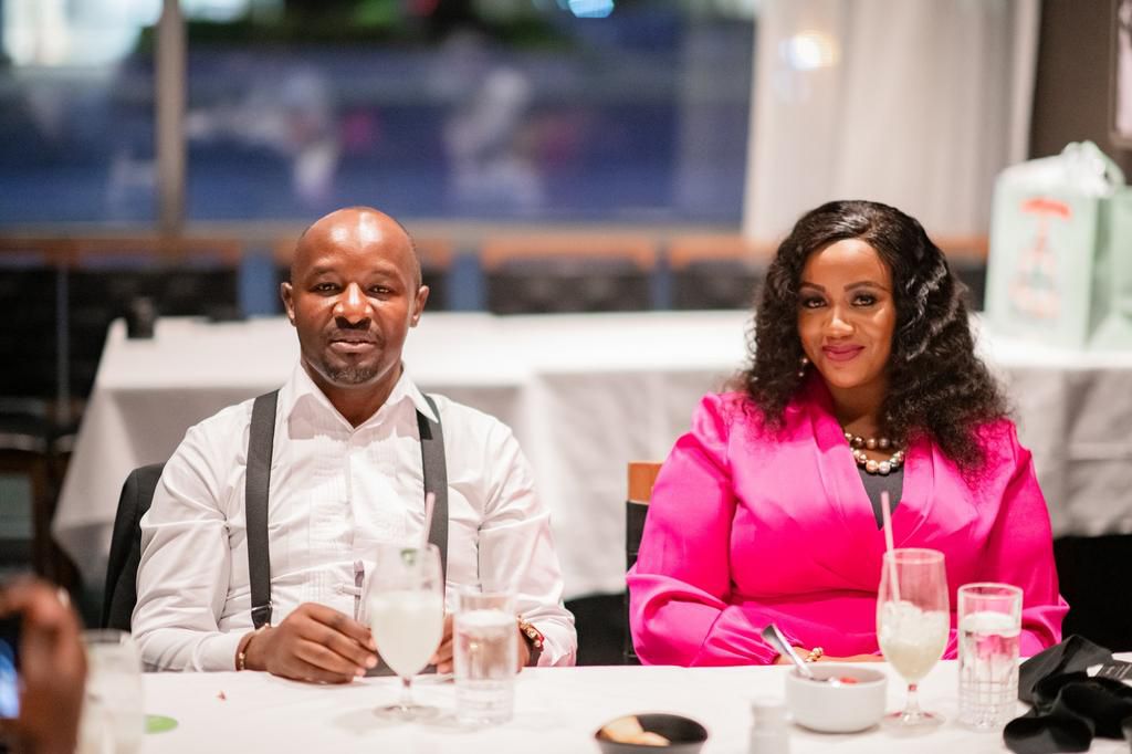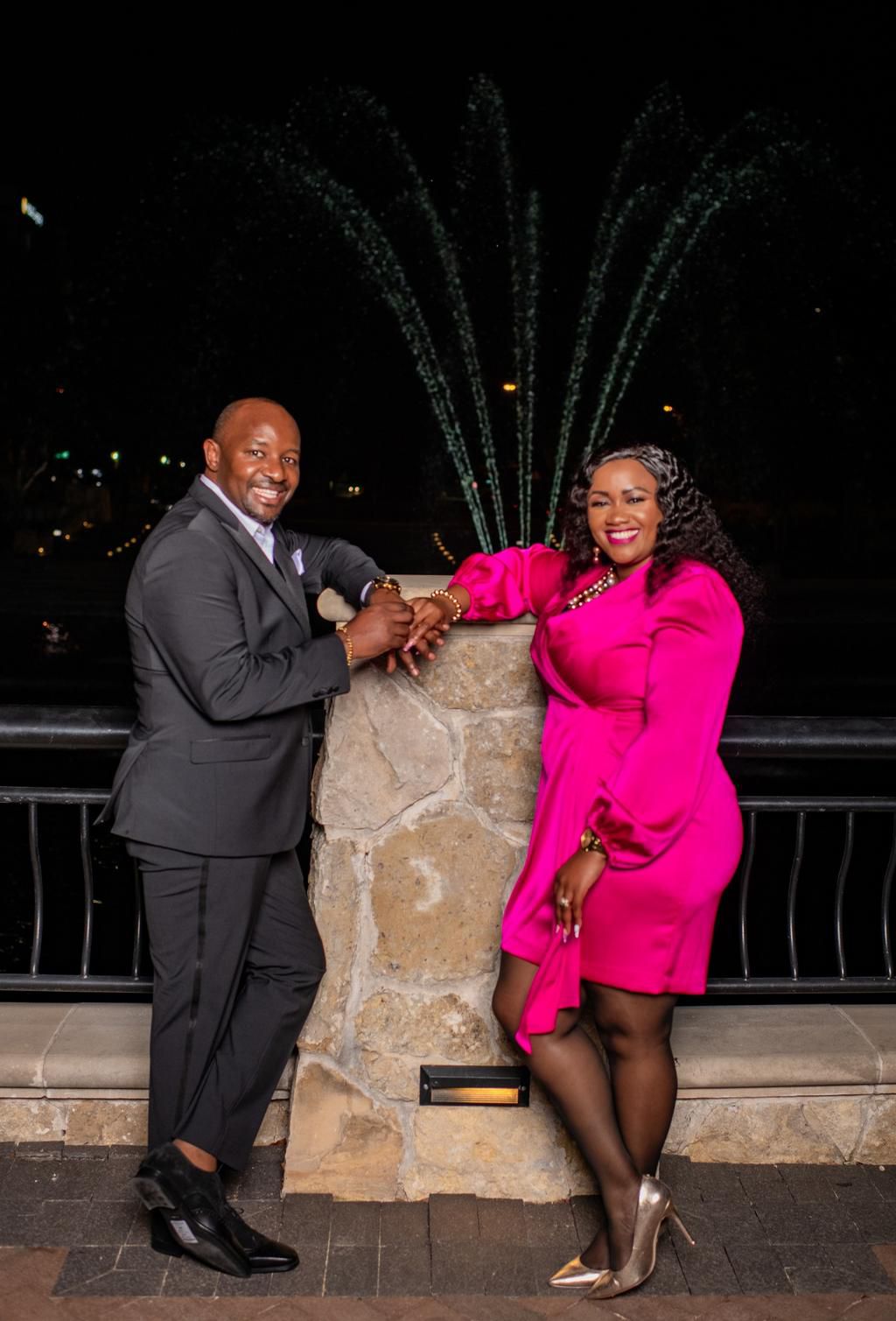 Cate Waruguru rocked a pink dress while her hubby donned a black blazer and trousers to match.
