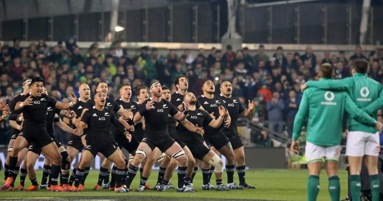 New Zealand players perform the haka ahead of their last match against Ireland in November 17, 2018. Ireland won the match 16-9