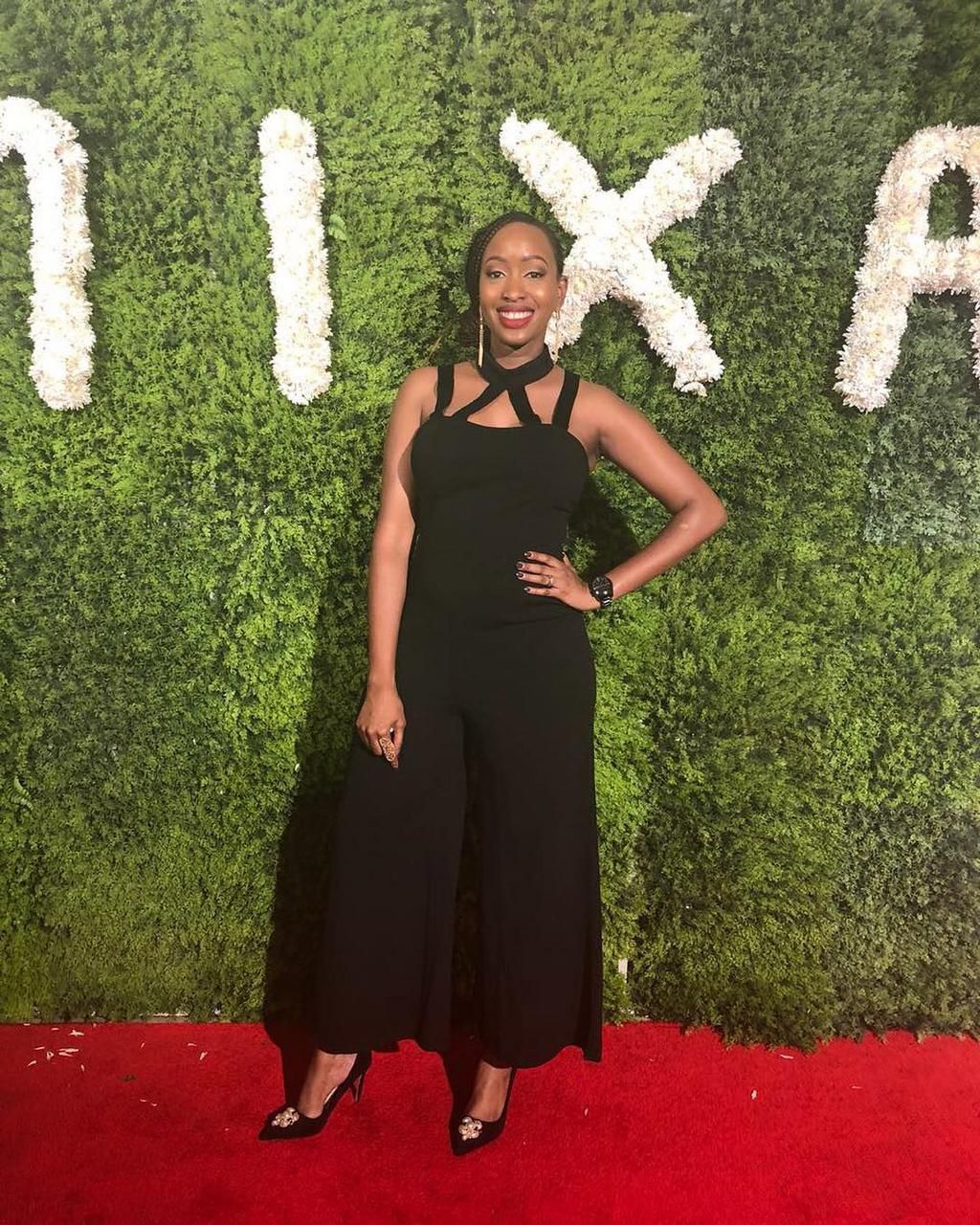 During the beauty product launch in March, Janet Mbugua was the queen of the red carpet in a black jumpsuit with cut out details.