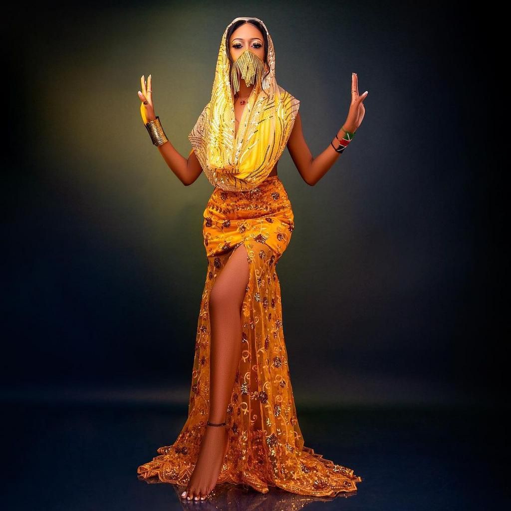 Inspiration: For a powerful and dramatic look, choose outfits with bold gold details and high slits. Confidence in your pose can elevate the overall impact of the outfit.