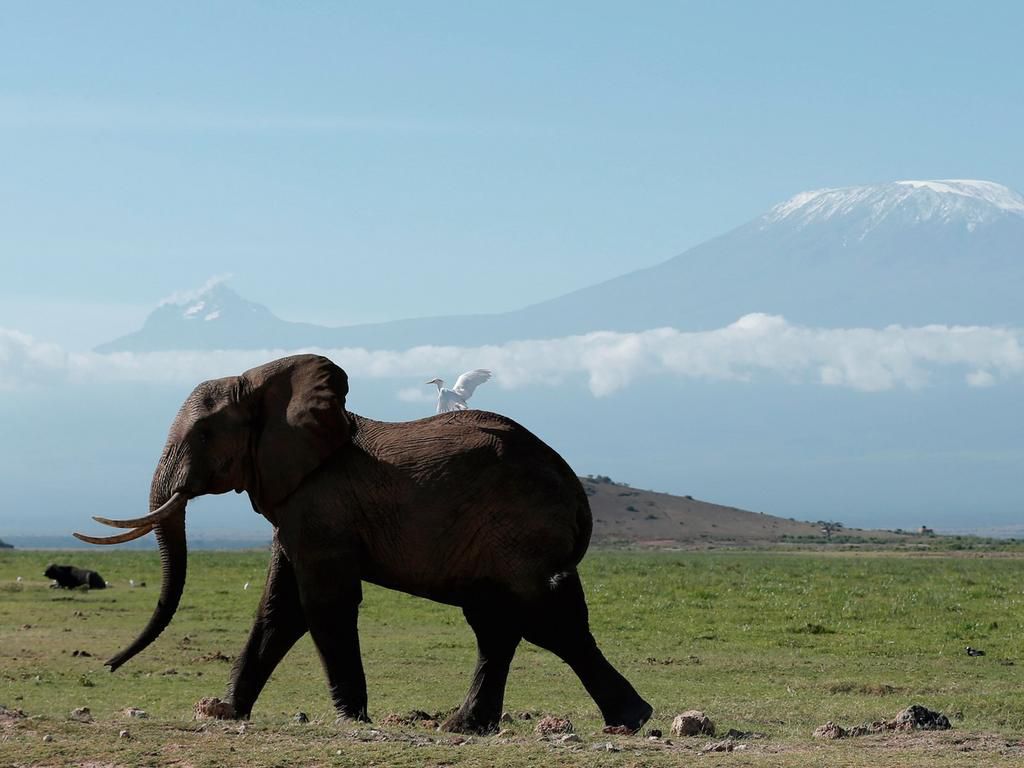 An elephant in Kenya's Amboseli National Park in front of Mount Kilimanjaro.