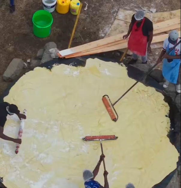 The World's Largest Chapati, attempted by content creator Raymond Kahuma, was rolled for over 1 hour, using custom-made giant rolling pins to make it flat