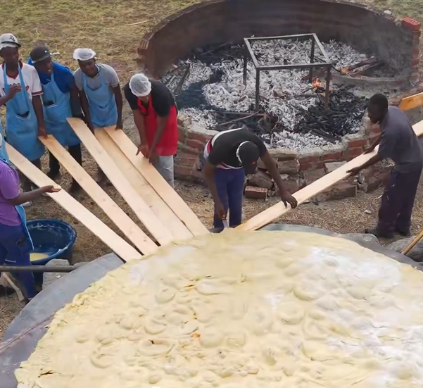 Artisans construct a 3.5-metre diameter custom brick stove, used by content creator Raymond Kahuma in attemting to make the World's Largest Chapati