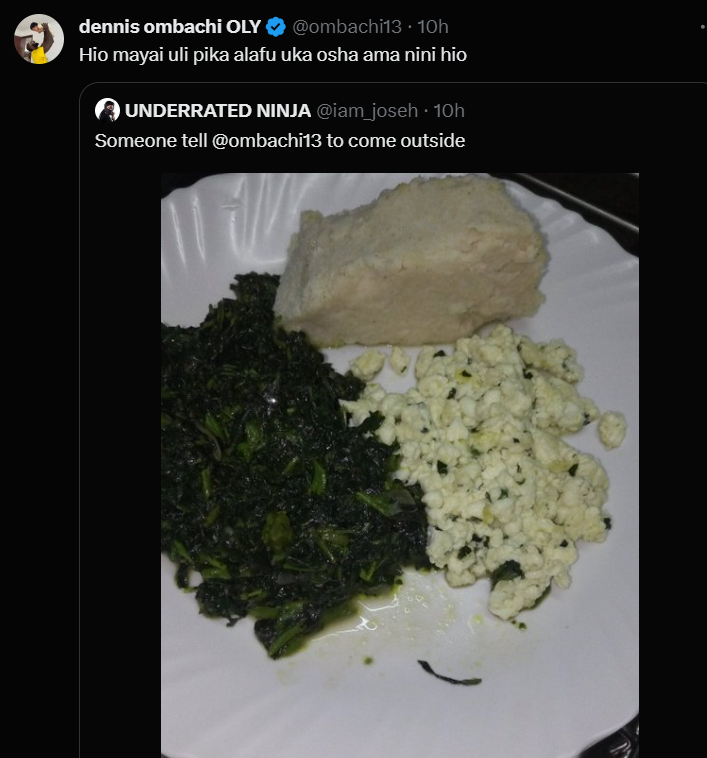 In a sizzling culinary face-off, former rugby player and self-taught chef Dennis Ombachi took centre stage as the honorary judge in an Ugali-Mayai (eggs) challenge that had netizens showcasing their kitchen skills.