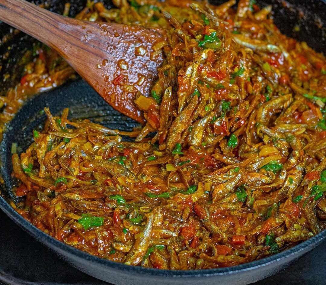 Without the heads, omena takes on a softer, more uniform texture. This works well when preparing wet-fried omena or mixing it with vegetables, coconut milk, or tomato sauce.