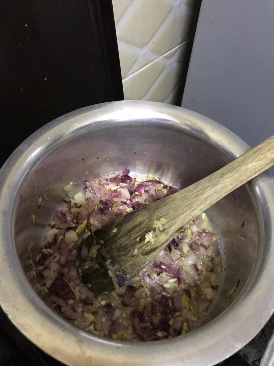 - Cook the onions well then add the garlic-ginger paste.