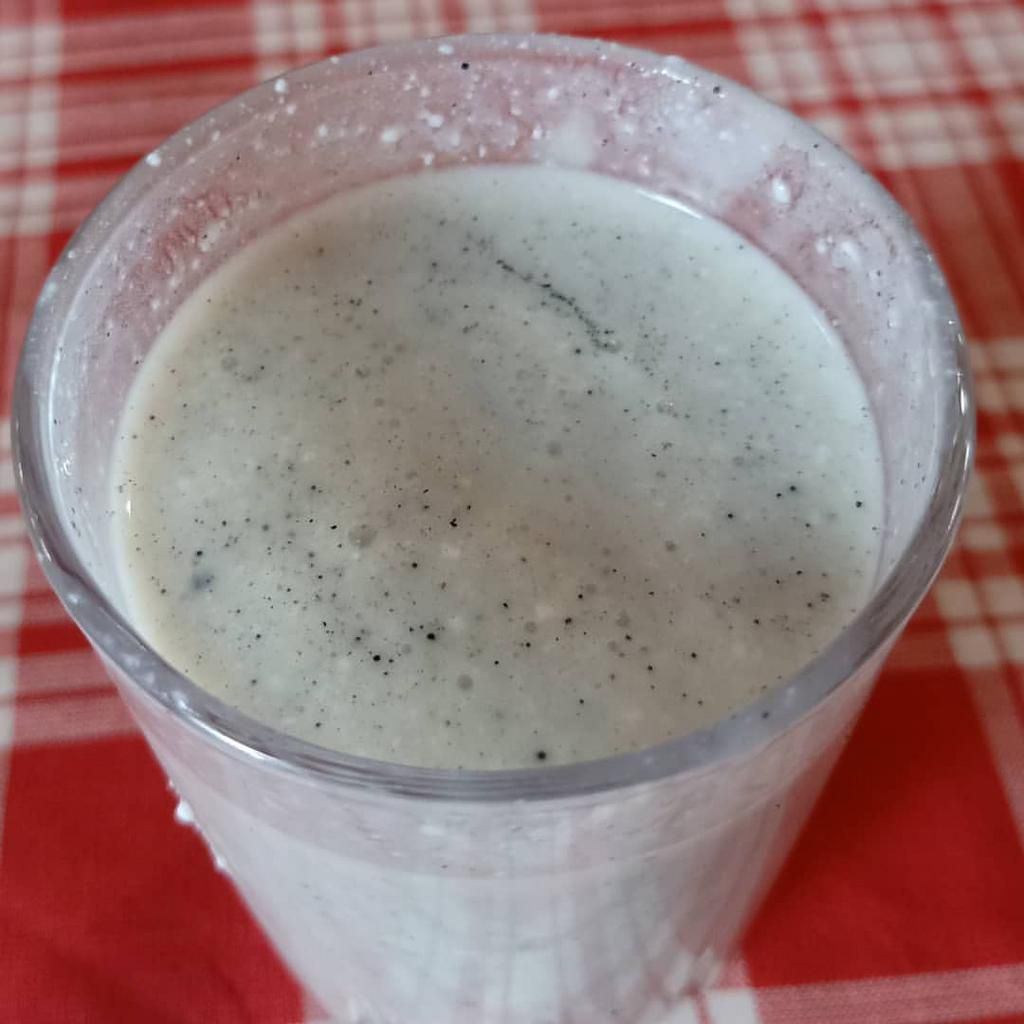 The addition of charcoal from the smoked herbs gives mursik its characteristic speckled appearance and slightly gritty texture.