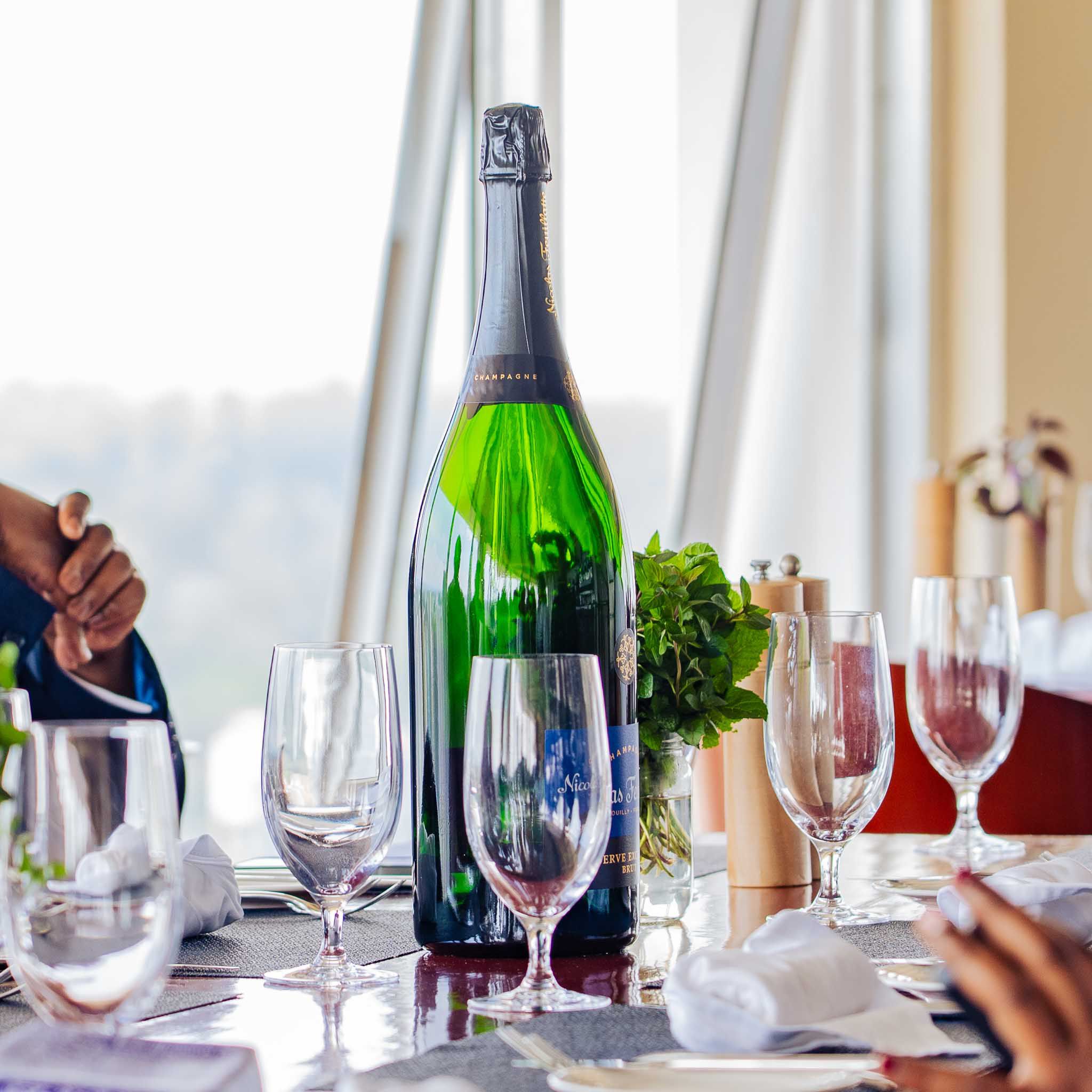 Guests can choose between vegetarian and regular menus, both paired with a fine selection of champagnes and sparkling wines.