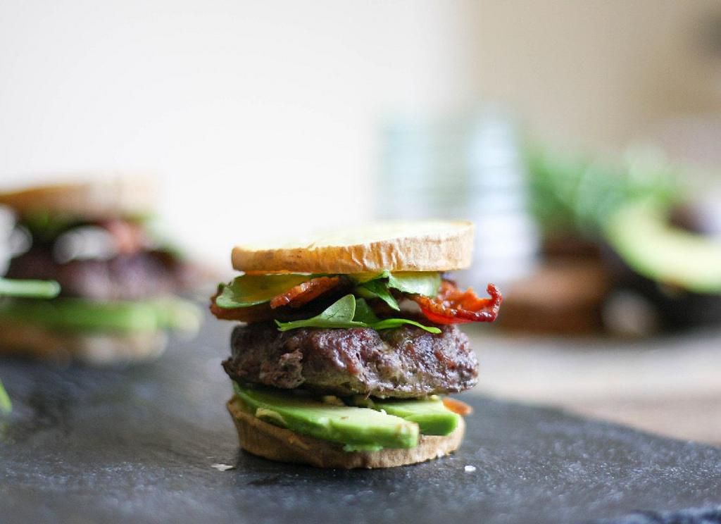 11) Breakfast sandwiches. This little breakfast sandwich from Grass Fed Salsa could almost be considered a breakfast slider. White sweet potato slices are used in place of traditional buns, and bacon, avocado, and homemade beef patties are sandwiched in between 'em. Hold them together with a toothpick to make them on-the-go. Grass Fed Salsa