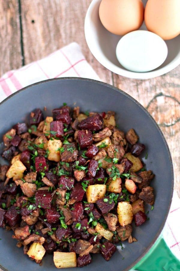 7) Paleo red flannel hash. Throw last night's pot roast into the skillet for this hearty breakfast hash. According to recipe creator Tasty Ever After , this classic dish gets its "red flannel" name from the vibrant beets in the mix. They add not only color, but also a superfood-level dose of antioxidants. Toss in whatever other veggies you have on hand to round out the recipe. Tasty Ever After