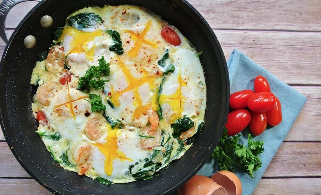 9) Spicy shrimp omelette. If you like your mornings to start off with a little kick, this recipe from Tasteaholics should do it. It gets its oomph from cayenne pepper and Sriracha salt, although you can feel free to douse it in regular Sriracha as you see fit, too. The shrimp are not only a perfect complement to the spice, but they're an excellent source of lean, low-calorie protein, too. Tasteaholics