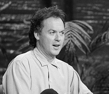 Michael Keaton (head of hair) Here's Keaton on with Jay Leno in 1991, but somehow still in 1985. Alice S. Hall/NBC/NBCU