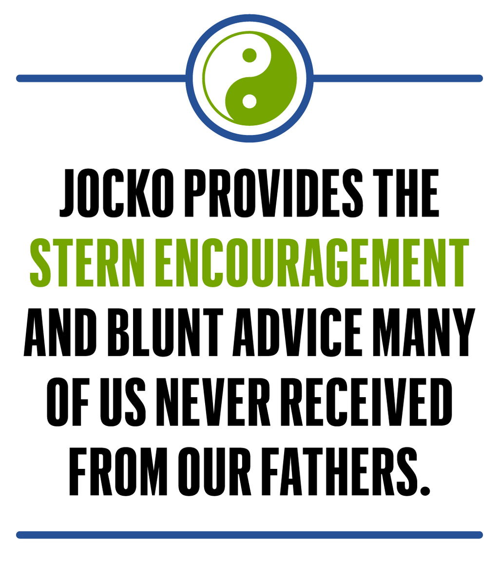 Jocko is the warrior sage. At age 48, he provides the stern encouragement and blunt advice many of us never received from our fathers. The world is nuanced and confusing. A lot of people are looking for a successful, healthy, happy life, but what exactly constitutes a good man is more complicated than ever. Jocko seems to simplify everything. Listen to him for long enough, and youre likely to hear guidance on every aspect of life, from work habits to workout regimens to relationship advice. As technology offers us the chance to binge-watch television while someone delivers food to our door, Jocko tells us to live a more meaningful existence.