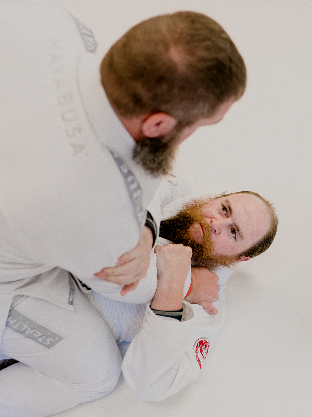 The first evening, there was a two-hour training session. When the white belts were told to partner off, I paired up with Jesse. Then a team of instructors showed us a few different guard escapestechniques to help neutralize an opponents legs when grapplingand then each pair took turns trying to replicate what wed been shown.