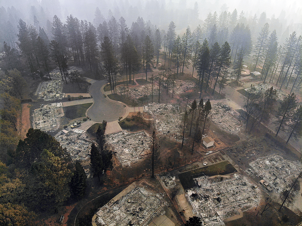 Cars burned to their axles littered the streets: pickup trucks and vans, economy hatchbacks and the fanciest sports cars, all hollowed out and rusty. Several schools burned, and Paradises only hospital was badly damaged. The town was a quilt of dumb luck and tragedy, depending on where the wind had pushed the flames and embers. Here and there, a house survived, about one for every ten that burned. Family photos still on the walls. Cupboards stocked with food. But mostly it was rubble, and gut-punched residents found little to save.