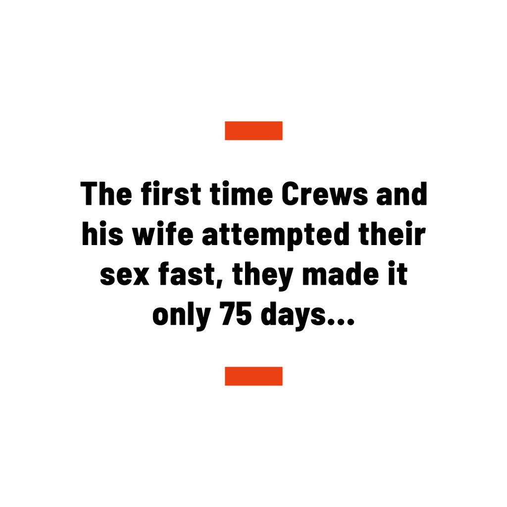The first time Crews and his wife attempted their sex fast, they made it only 75 days, but the next year, they tried it again and made it all 90 days. This is the deal, he says. Everything that is within your grasp doesnt need to be in your hand. You have to tell your body no. Because if you listen to your body, youre gonna be off.