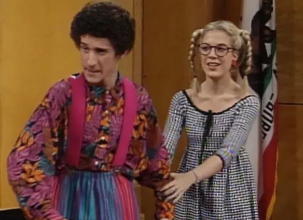 Then: Tori Spelling Before her days on Beverly Hills, 90210, Tori Spelling guest starred on Saved by the Bell as Screech's equally nerdy love interest, Violet. NBC Universal