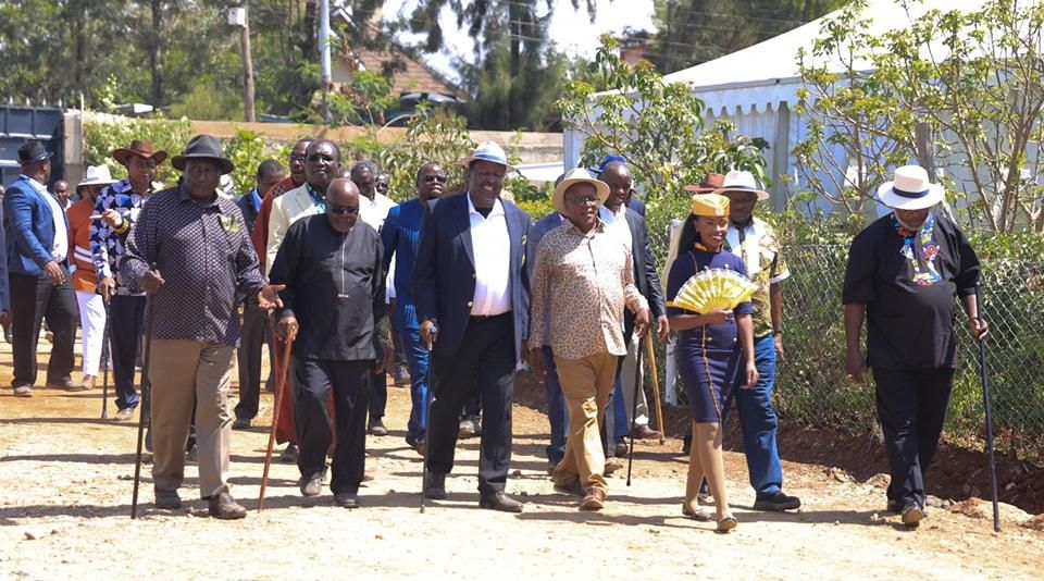 Mudavadi and the other guests displayed a variety of attire, ranging from semi-casual African shirts to formal suits, all complemented by white Panama hats featuring a bright blue stripe.