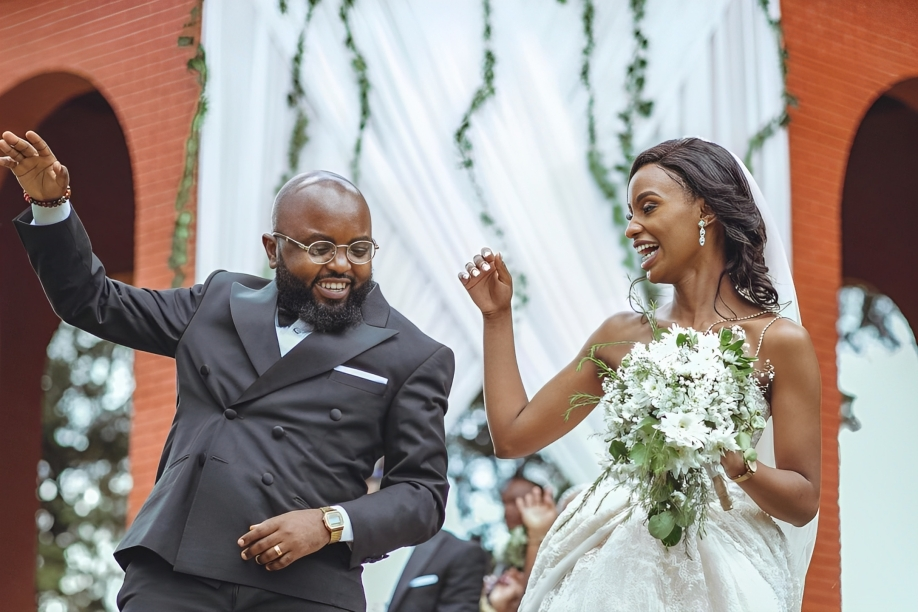 Moji Shortbaba and his wife Nyawira Gachugi on their wedding day