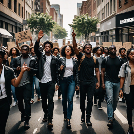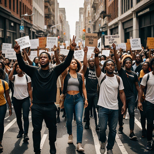 An AI-generated image of people protesting on the streets (Hotpot.ai)