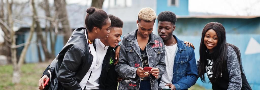 Young people having fun and using technology