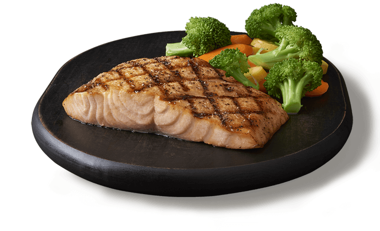 At Outback Steakhouse: Modified Perfectly Grilled Salmon At Outback, you've actually got a few options. Like at Chili's, you can go with a dry steak and steamed veggies. Or, if you feel like having seafood, order the Perfectly Grilled Salmon without seasoning. Just ask that its prepared without sauce or butter, and get plain, steamed veggies on the side. Outback Steakhouse