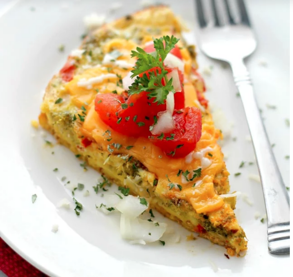 Slow-Cooker Veggie Omelet Packed with all sorts of fresh veggies (like bell pepper, broccoli, and tomato), this easy egg recipe comes in handy when you need to feed a crowd. GET THE RECIPE Per serving: 142 calories, 7 g fat (2 g sat), 8 g carbs, 263 mg sodium, 1 g fiber, 4 g sugar, 10 g protein Diethood