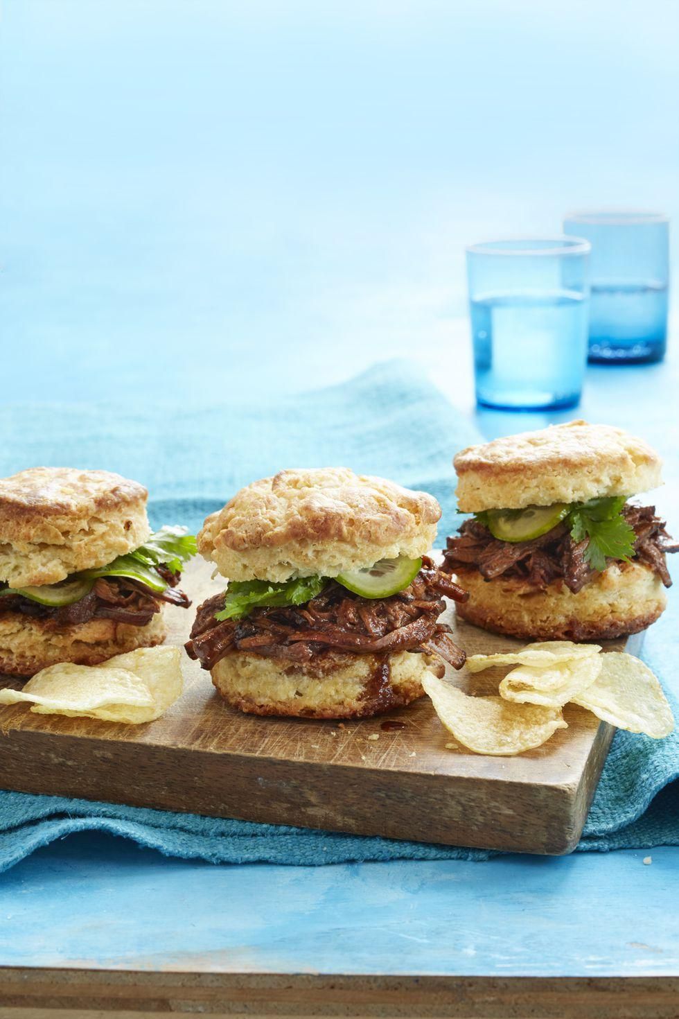Smoky Pulled Brisket Biscuits Craving some Southern cooking? These slow-cooker sammies are just what you need at your next cookout. GET THE RECIPE Per serving: 659 calories, 21 g fat (6 g saturated), 53 g carbs, 113 mg sodium, 4 g fiber, 66 g protein Woman's Day