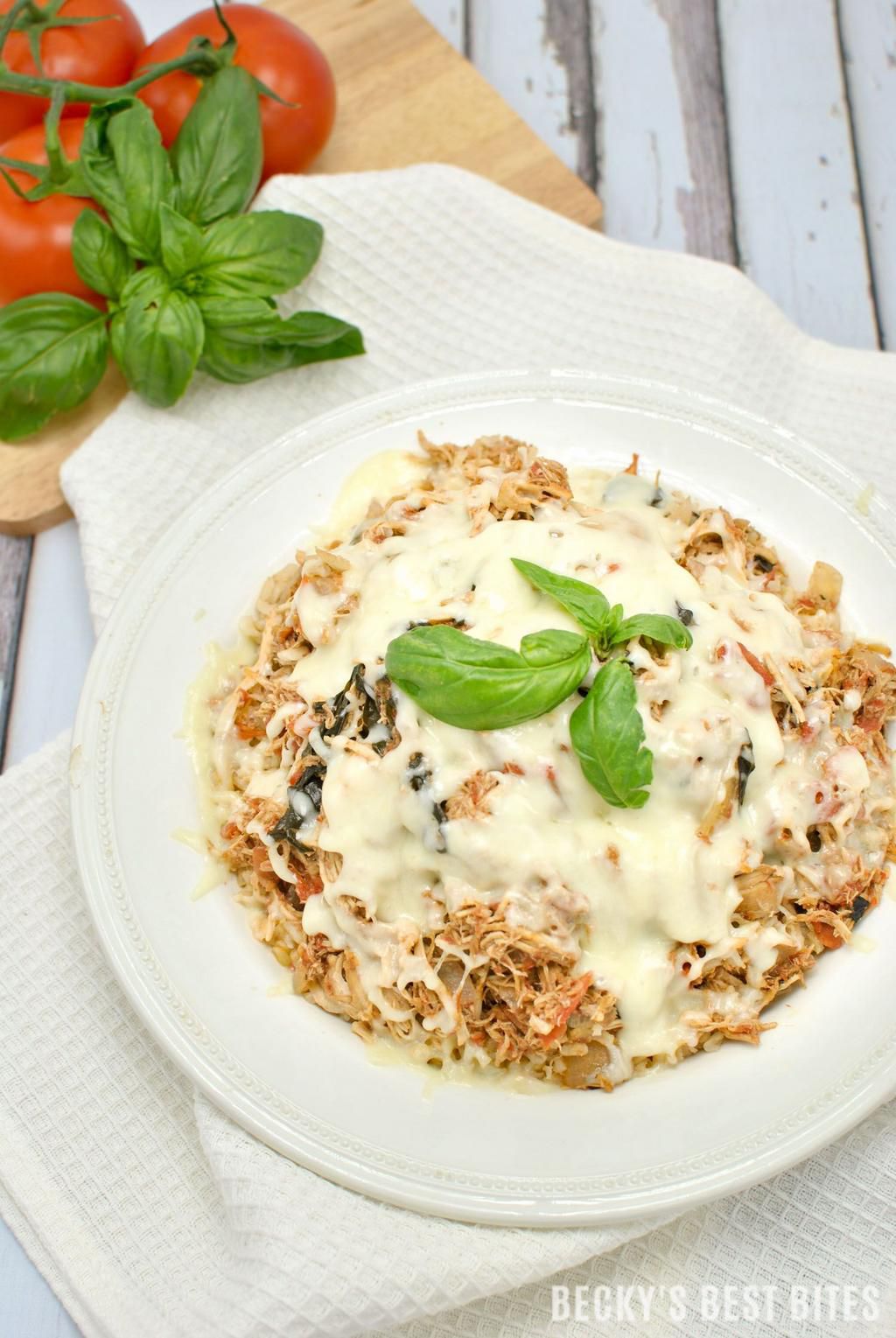Slow-Cooker Chicken Caprese The basil-y flavor of this creamy chicken recipe is absurdly cozybecause sometimes you need comfort food in the summer, too. GET THE RECIPE Per serving: 255 calories, 10.2 g fat (3.9 g saturated), 9 g carbs, 7 g sugar, 193.9 mg sodium, 1.9 g fiber, 31.1 g protein Becky's Bites
