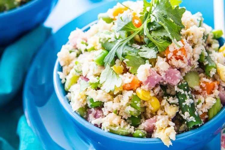 Crock-Pot Cauliflower Rice This lighter, brighter, veggie-packed version of your usual takeout order is so very easy to whip up. GET THE RECIPE Per serving: 172 calories, 15 g fat (2 g saturated), 22 g carbs, 6 g sugar, 405 mg sodium, 8 g fiber, 13 g protein SkinnyMs.