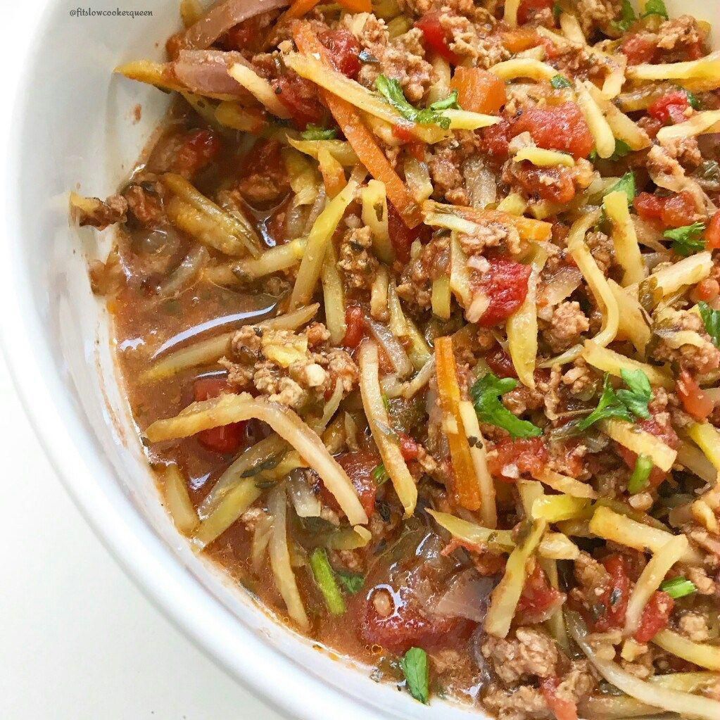 Crock-Pot Slawghetti Spaghetti just got a summer-appropriate makeover with this low-carb, paleo , and Whole30-compliant recipe. GET THE RECIPE Per serving: 260 calories, 3.8 g fat (1.7 g saturated), 22 g carbs, 2.2 g sugar, 591.4 mg sodium, 3 g fiber, 27.6 g protein Fit Slow Cooker Queen