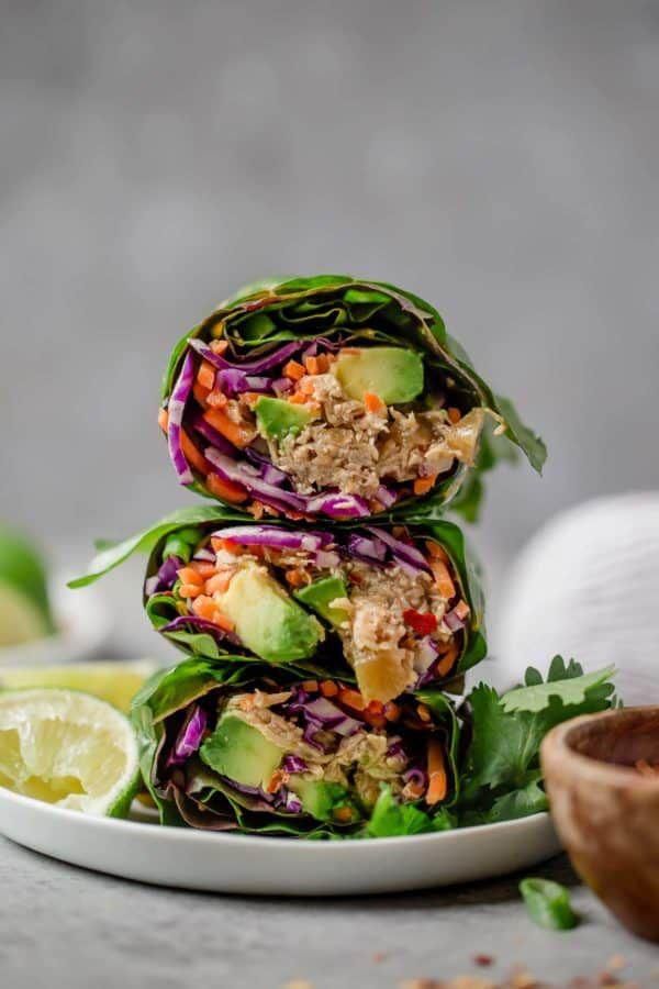 Slow-Cooker Hawaiian Shredded Chicken These wraps are just as pretty as they are deliciousand any leftover shredded chicken works well in salads for future meals. GET THE RECIPE Per serving: 190 calories, 5 g fat, 10 g carbs, 7 g sugar, 400 mg sodium, 1 g fiber, 24 g protein The Real Food Dietitians