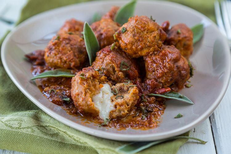 Slow-Cooker Mozzarella Stuffed Meatballs Everyone at summer family gatherings will ooh and ahh over these cheesy meatballs. GET THE RECIPE Per serving: 255 calories, 14 g fat (5 g saturated), 1.8 g carbs, 3 g sugar, 153 mg sodium, 3 g fiber, 21 g protein SkinnyMs.