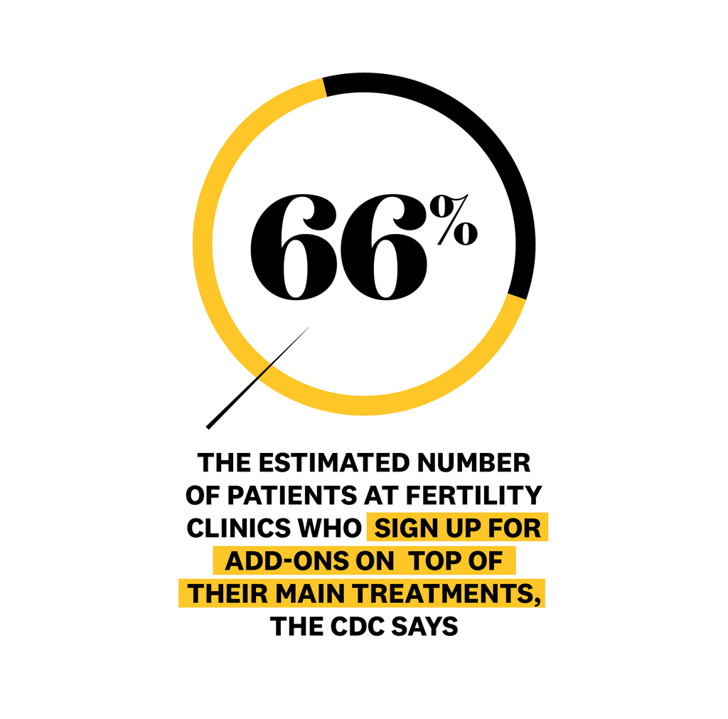 About 10 percent of women in the U.S. struggle to conceive or stay pregnant, and nearly 2 percent of all births in the country are via in vitro fertilization (IVF), which costs upwards of $15,000. But beyond that, more than two-thirds of fertility clinic patients spend up to $10,000 per cycle on so-called optional extras or add-onsemerging techniques a clinic might offer on top of mainstream fertility treatment (i.e., IVF), supposedly to improve the odds even further and typically (almost always) for an additional cost. Add-ons, like the ones Citro tried, are rarely covered by insurancethough, in general, getting any part of your fertility treatment covered is still not the norm.