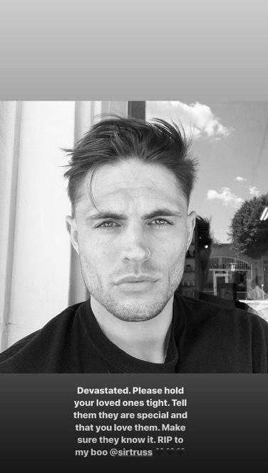 Devastated. Please hold your loved ones tight. Tell them they are special and that you love them, she wrote over a photo of Thomas in her Instagram Story. Make sure they know it. RIP to my boo @sirtruss.