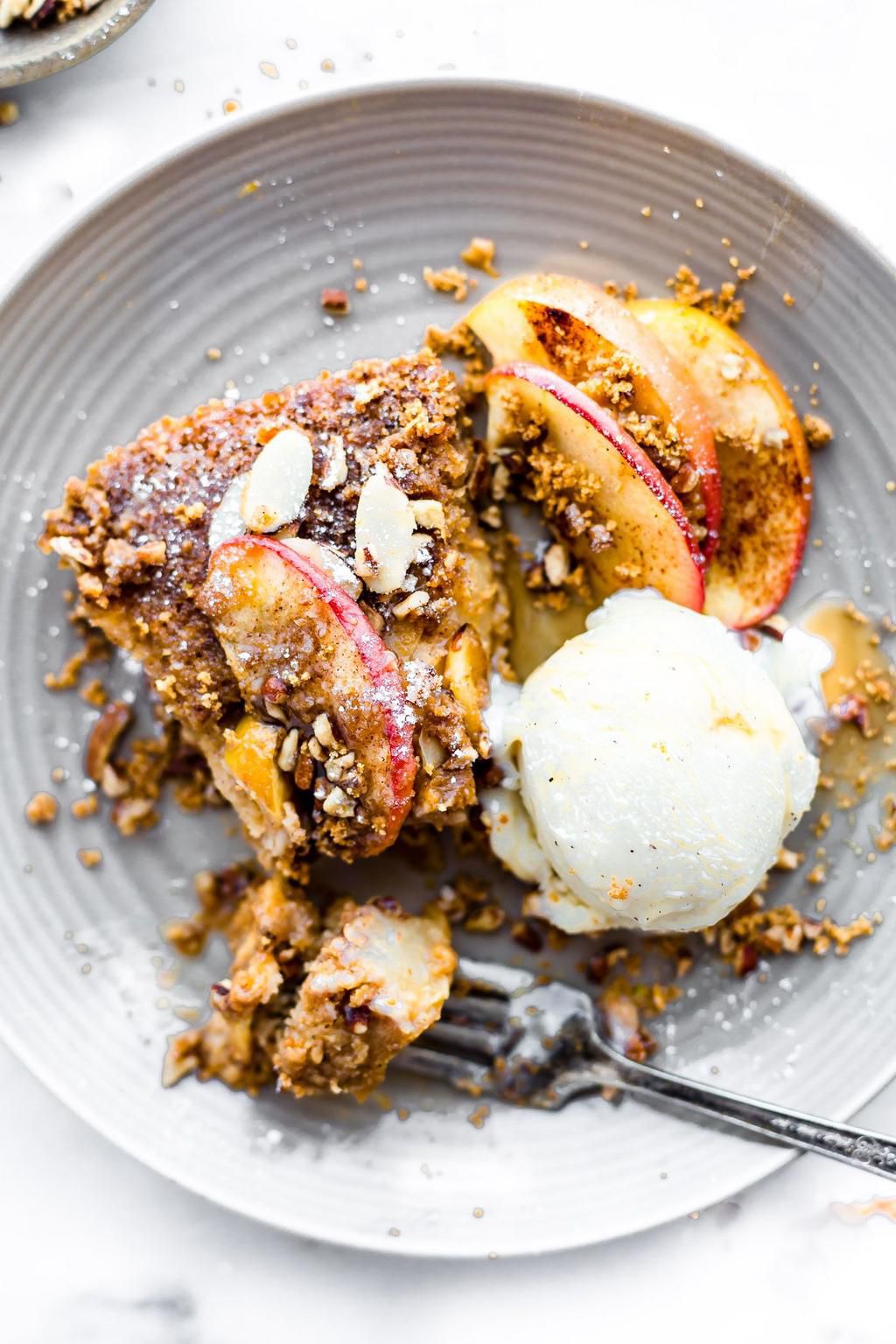 Impossibly Easy Paleo Pear Apple Pie This fun twist on good ol apple pie features a custard-like apple-pear filling with hints of cinnamon and ginger. The best part? You dont have to worry about making crust. Get the Recipe Per one-slice serving: 285 calories, 13 g fat (6.5 g sat), 34 g carbs, 21 g sugar, 3 g fiber, 6 g protein Courtesy