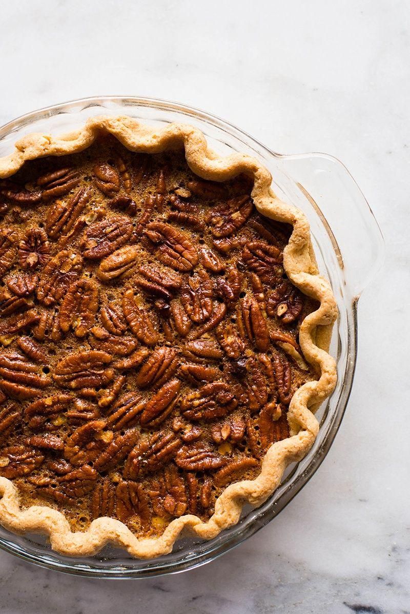 Better-For-You Pecan Pie With a few simple ingredient swaps, healthy pecan pie is totally possible. This recipe swaps refined white sugar for coconut sugar and honey, for a more wholesome-tasting treat. Get the Recipe Per one-slice serving: 414 calories, 29 g fat (7 g saturated), 35 g carbs, 18 g sugar, 165 mg sodium, 3 g fiber, 6 g protein Courtesy